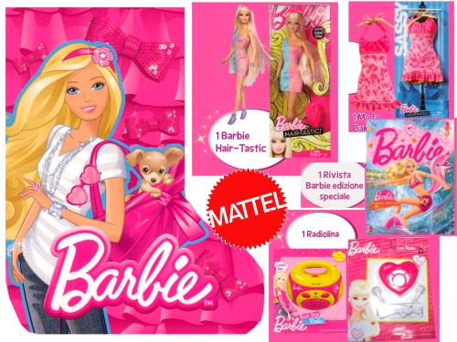 Nella calza di Barbie, adatta alle bimbe con un’età compresa tra i 5 e i 7 anni, vengono regalati molti doni: una Barbie Hair-Tastic da pettinare e acconciare come più vi piace, un vestito trendy e alla moda con cui vestire la vostra Barbie, una radiolina e una rivista in edizione speciale.