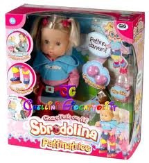 Sbrodolina è una bambolina adatta alle bimbe dai tre ai cinque anni che, come dice il nome, si sbrodola parecchio ed è proprio questo il bello e ciò che la resa tanto famosa. Con il passare del tempo però Sbrodolina cresce, più che altro per avere nuove situazioni di gioco.