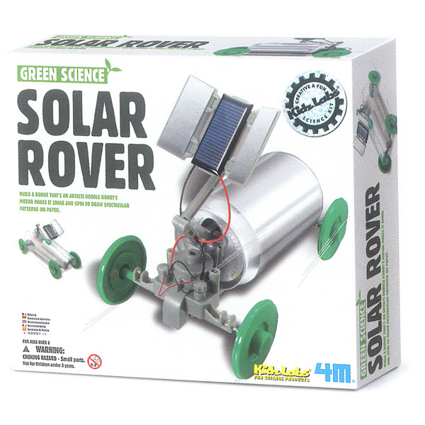 Sono giochi che vengono chiamati science green visto che applicano la scienza, ma dal punto di vista ecologico. La scatola contiene tutti i pezzi per la costruzione del robot: bracci per il movimento, un supporto per il piccolo pannello solare, i cavi, un telaio, quattro ruote, un motore, un connettore e non solo.