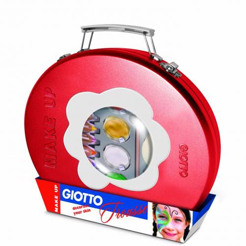 La trousse Giotto Make Up farà la felicità di mamme e bambine perché creata proprio come una trousse reale e del tutto simile a quelle sfoggiate dalle ragazze più grandi. I trucchi sono racchiusi in una trousse di metallo molto trendy creata per stimolare nelle bimbe la voglia di giocare e divertirsi con i colori, ma anche per iniziare a conoscere il proprio volto e diventare grande, anche se solo per un giorno. La trousse contiene sei matite cosmetiche Giotto Make up molto morbide e adatte per i disegni sul viso poiché non graffianti, quattro ombretti Giotto Make up pratici da applicare con le dita e comodissimi per tutte le sfumature che si vogliono creare sugli occhi, sia per truccarsi come la mamma o per giocare alle make up artist truccando le amiche, e sia per disegnare sul volto maschere meravigliose ispirate a farfalle, coccinelle e fiori.