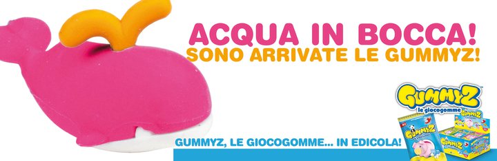 Dopo aver accessoriato i polsi di tutti i bambini con gli Shokky Bandz, ecco in arrivo le Gummyz, le giocogomme tutte da collezionare e da nascondere nel portapenne, una collezione che è così bella da aver paura di usare! Le Gummyz si presentano così come la nuova mania di tutti gli studenti, una collezione di ben 96 gommine tutte da collezionare e da scambiare con gli amici più cari durante l’intervallo a scuola.