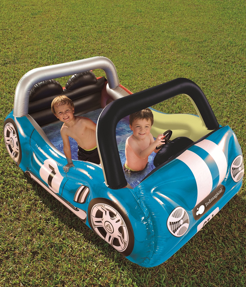 – H20 Supercar: è la macchinina gonfiabile sulla quale il bimbo potrà salire e giocare a guidare in un mare limpido e cristallino. La macchina è grande abbastanza da accogliere più bambini che potranno giocare in una struttura soffice e bagnata