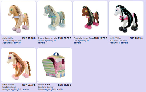 Insomma la varietà regna sovrana. Oggi però vi voglio presentare, proprio in tema di bambine e animali, le scuderie di cavallini della Manhattan Toy. Sono piccoli giocattoli di panno morbido, con criniera e coda lunga e pettinabile con la spazzola data in dotazione. Il cavallino, o la cavallina, viene fornita con una piccola sella.