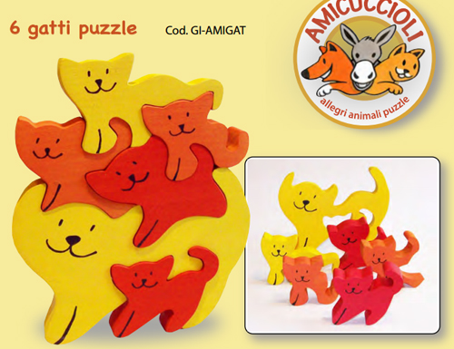 Gli amicuccioli sono dei carinissimi animaletti realizzati in legno per i bambini in età prescolare. Formano un puzzle colorato e vengono prodotti da un’azienda tunisina di sole donne che ha particolarmente a cura l’ambiente.